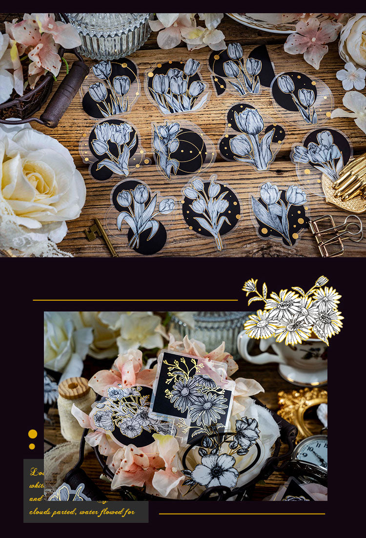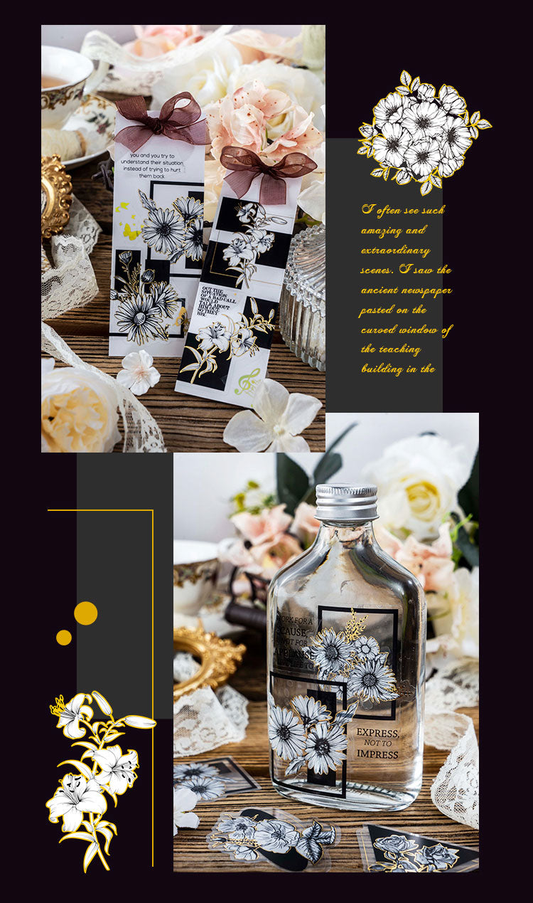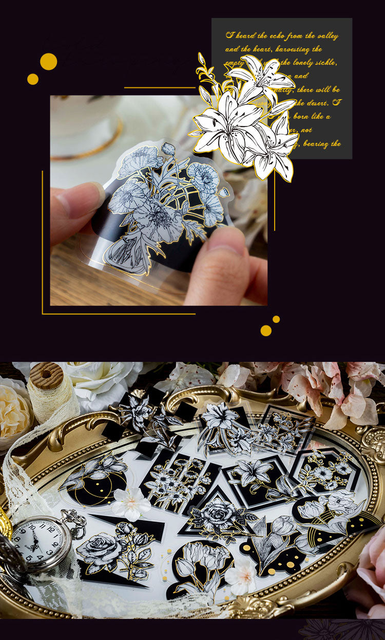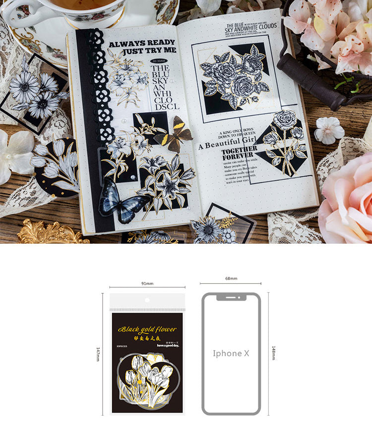 30PCS Black gold flower series sticker