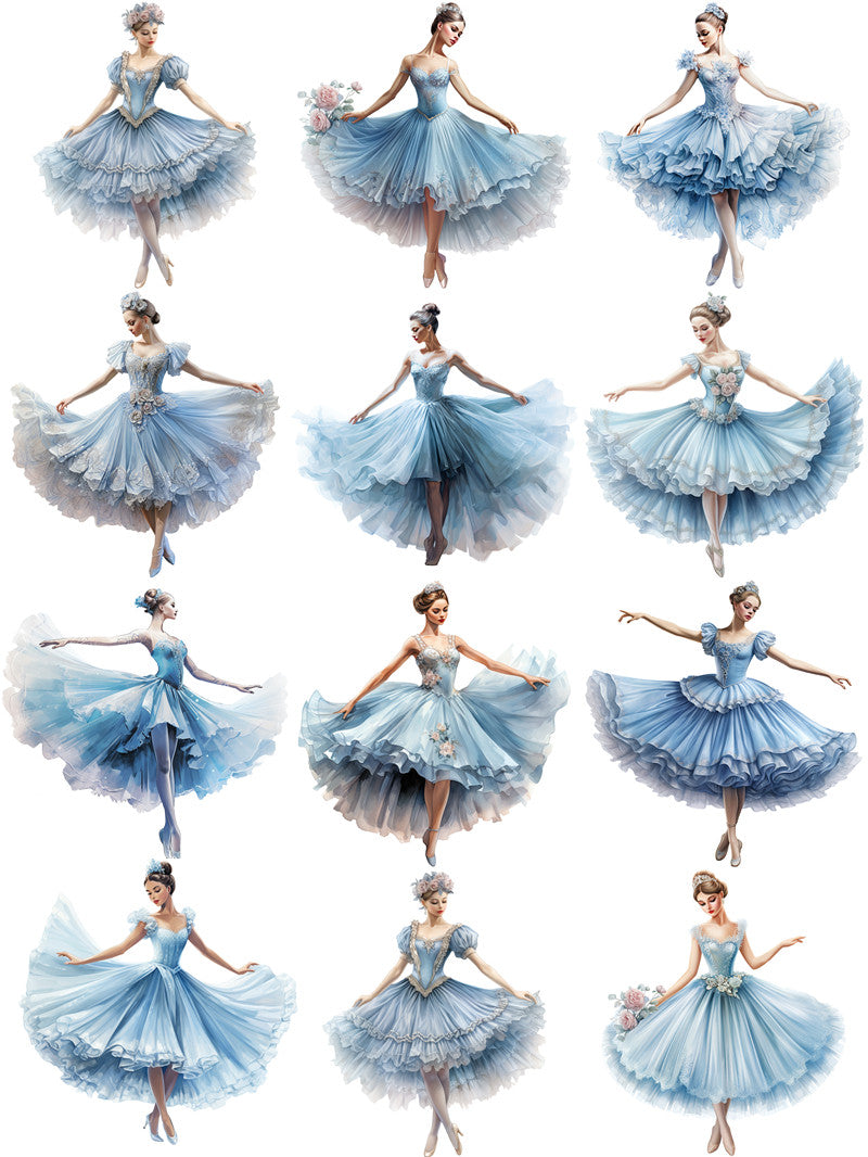12 Stück blaue Ballettaufkleber.