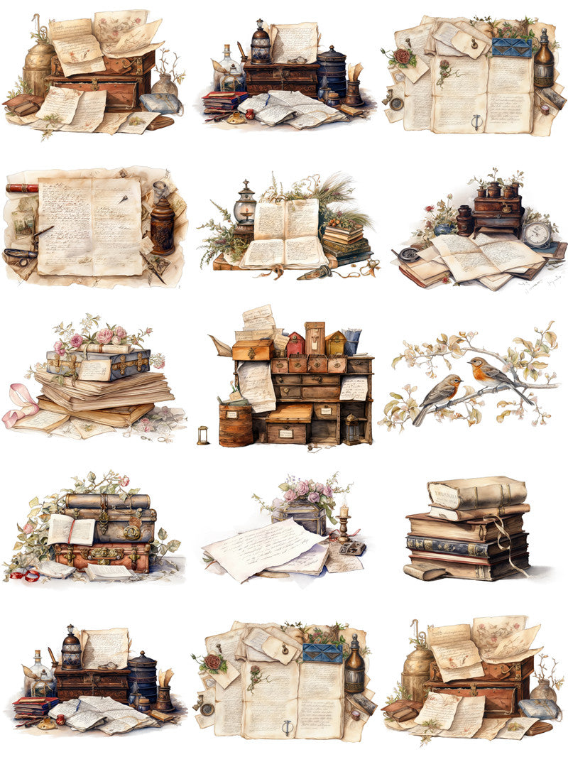 15 Stück Vintage-Buchstabenaufkleber.