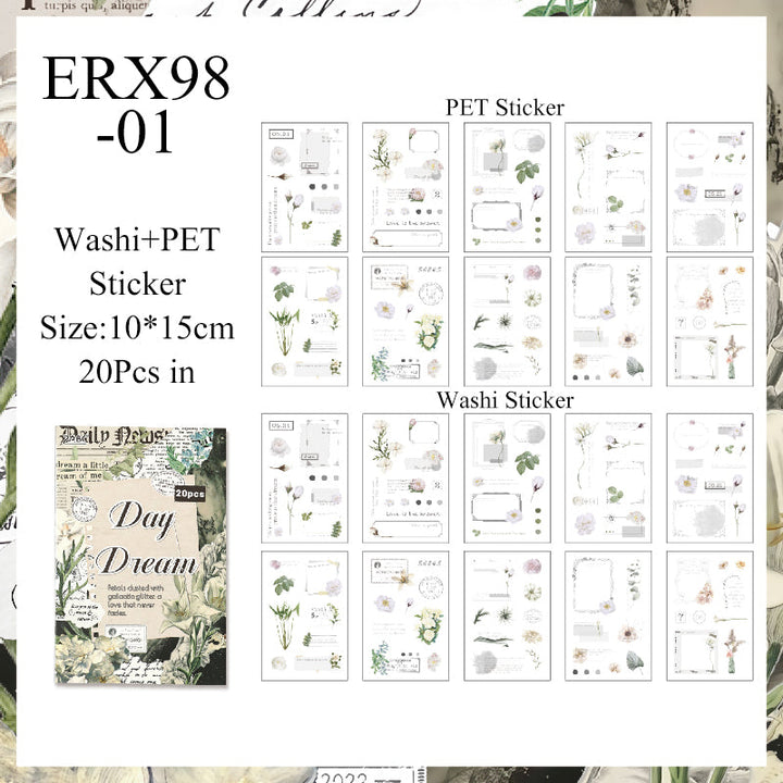 20PCS Flower Wandering Poems Series sticker book