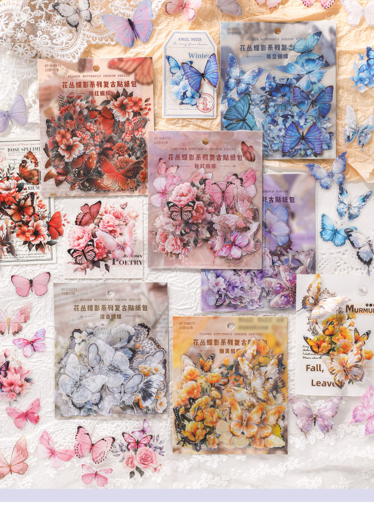 40 Stück Aufkleber mit Blumen- und Schmetterlingsmotiv