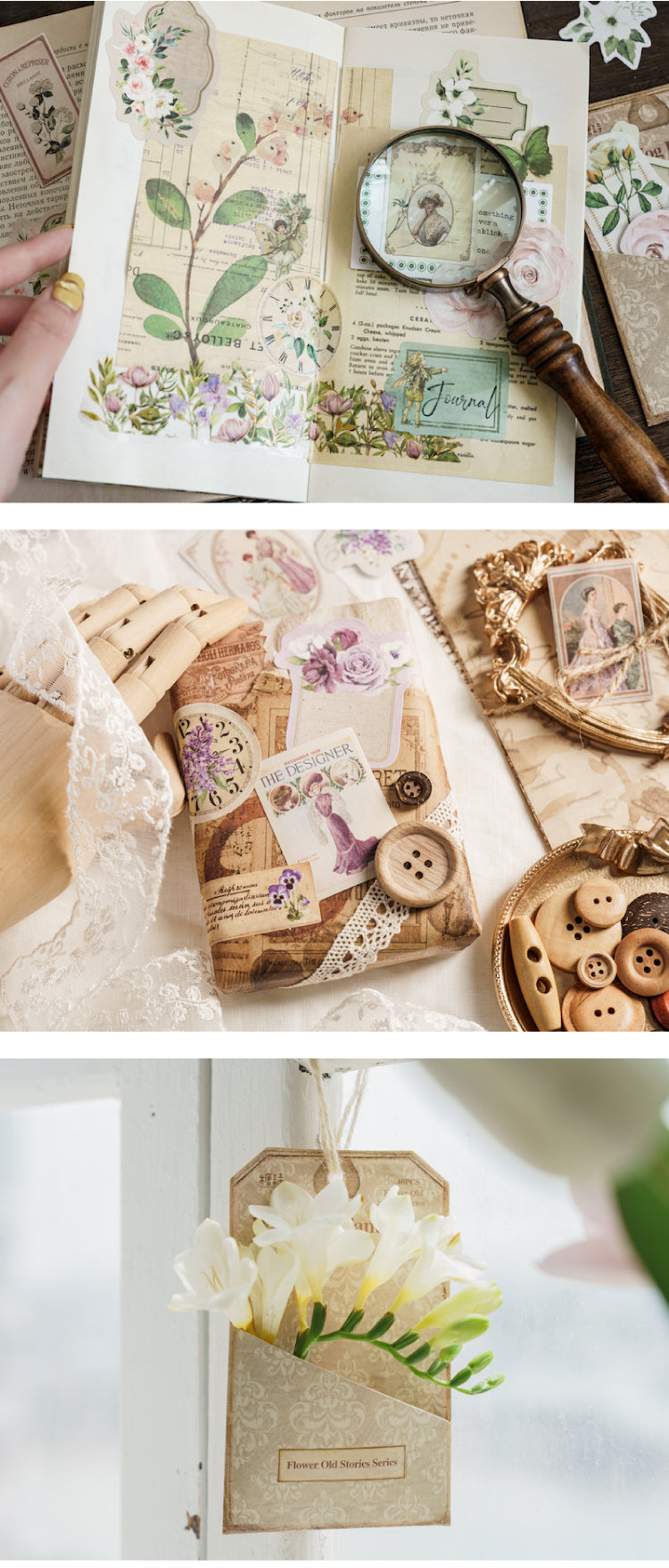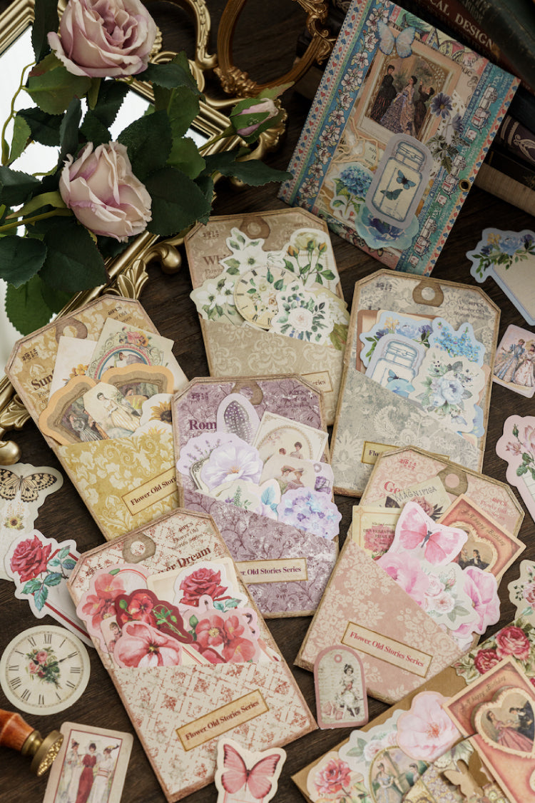 40 Stück Aufkleber mit der Serie „Blumen alte Geschichten“