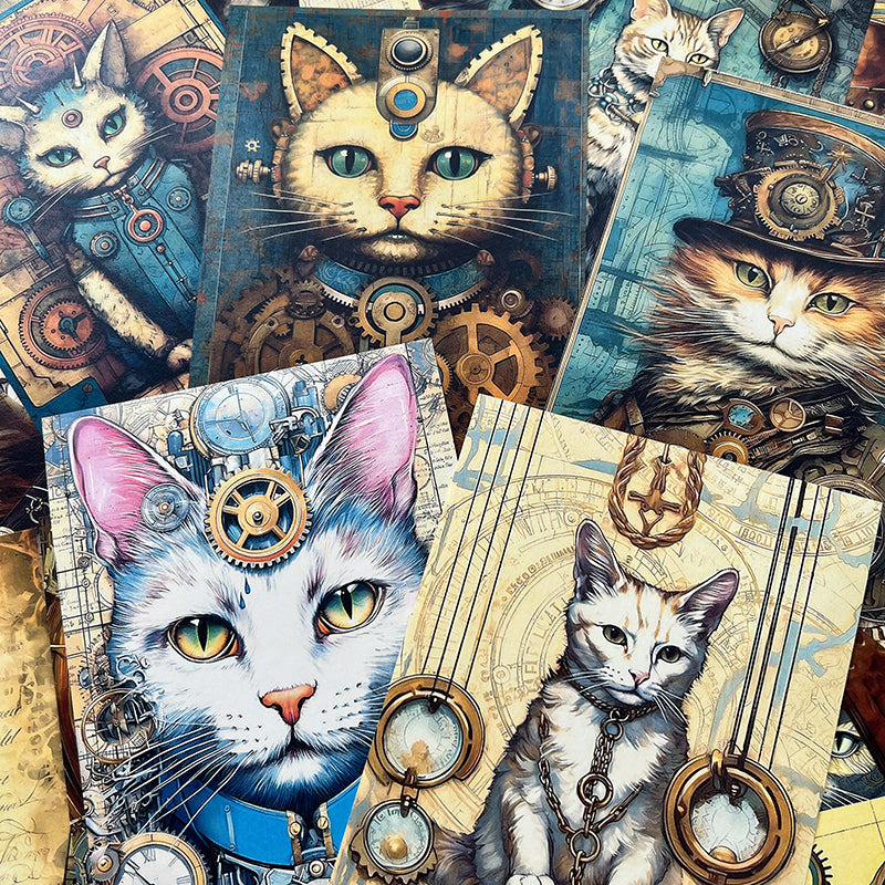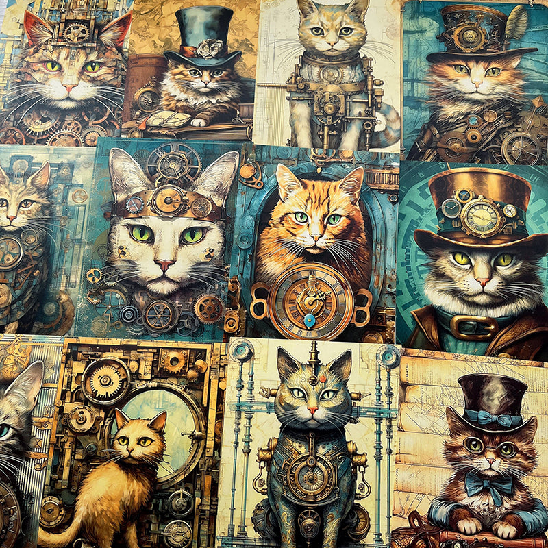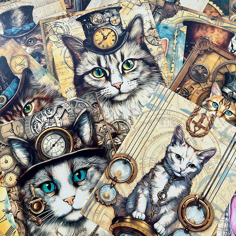40 Stück Steampunk-Katzen-Hintergrundpapier.