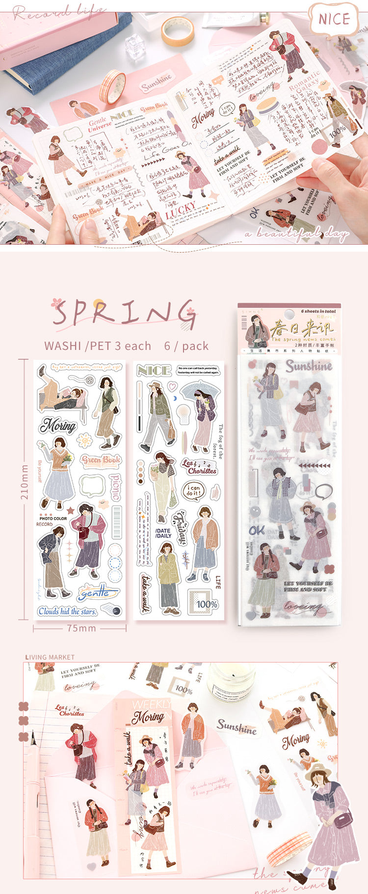 6 Stück Aufkleber der Life Market-Serie