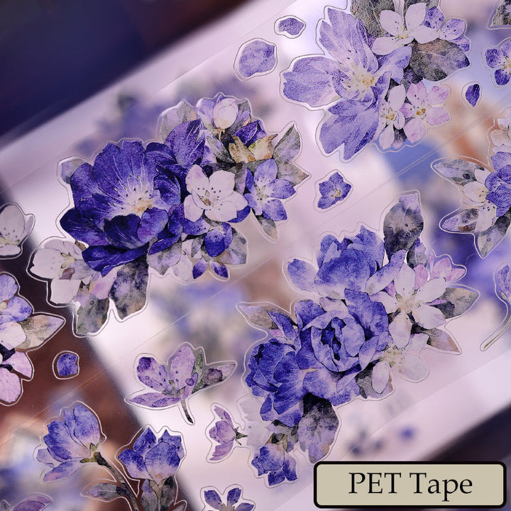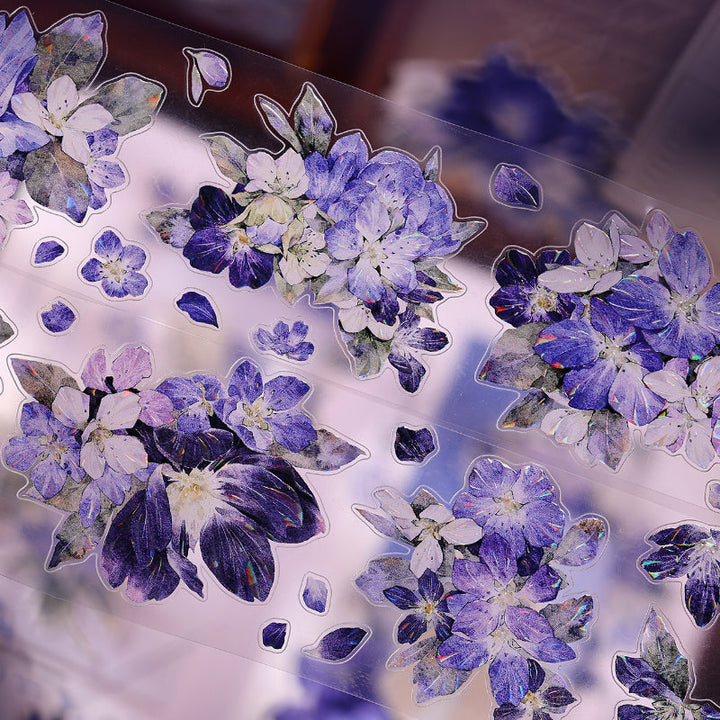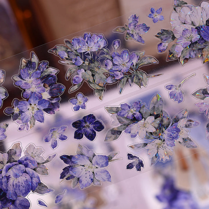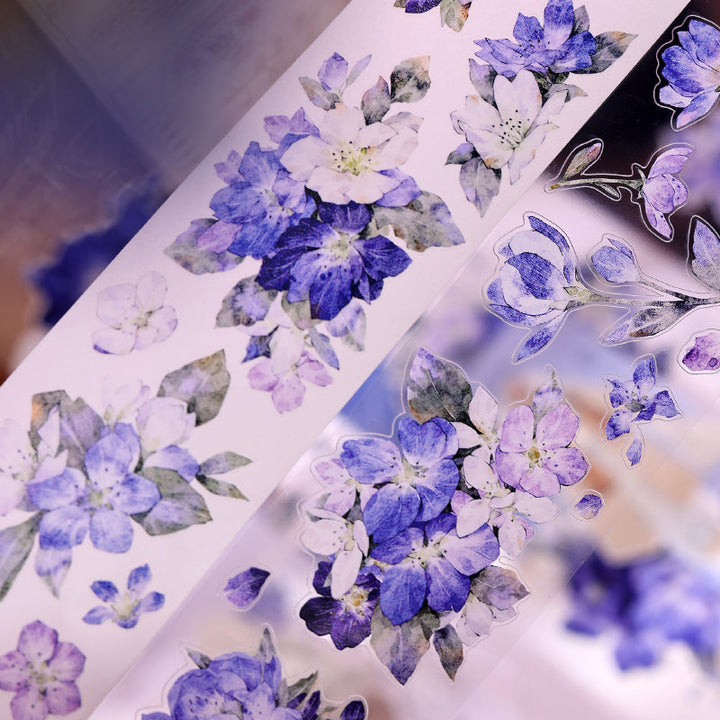 Whole Roll 5.5cm*6m Blue island flower Die Cutting Washi/PET/Shell Light PET Tape