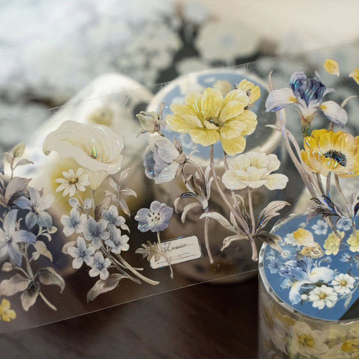 Whole Roll 5.6cm*6m Golden stamens Washi/PET/Shell Light PET Tape