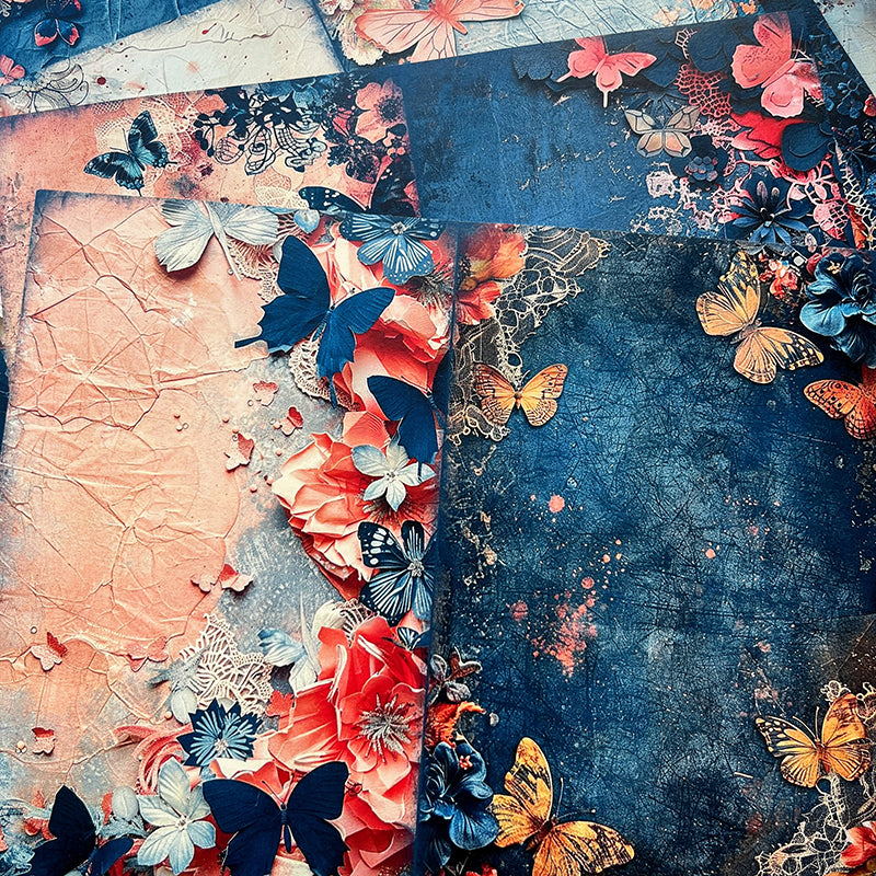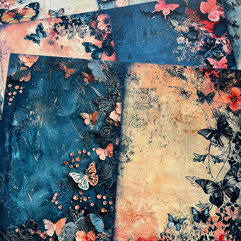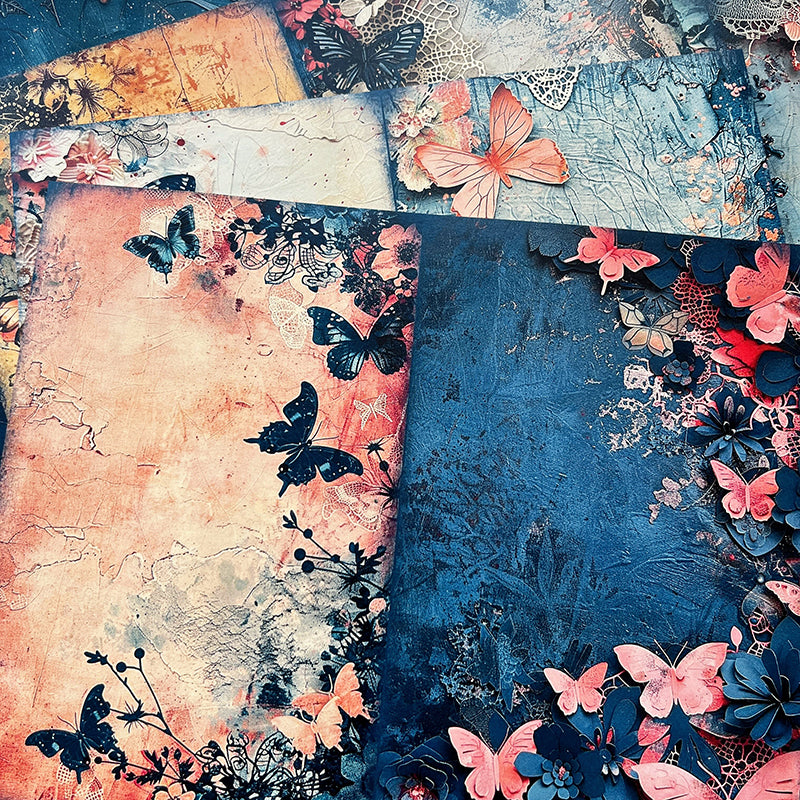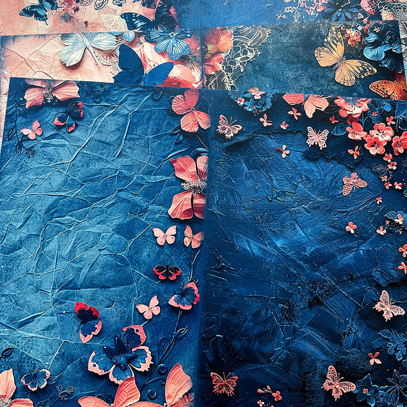 10 piezas de papel de fondo barroco con mariposa azul