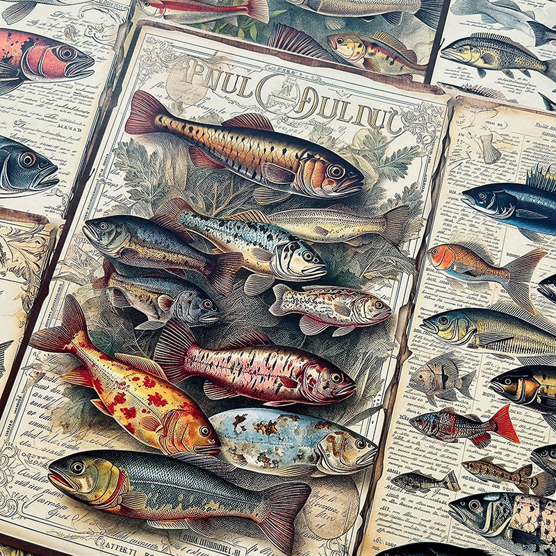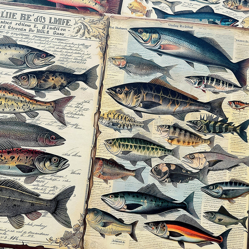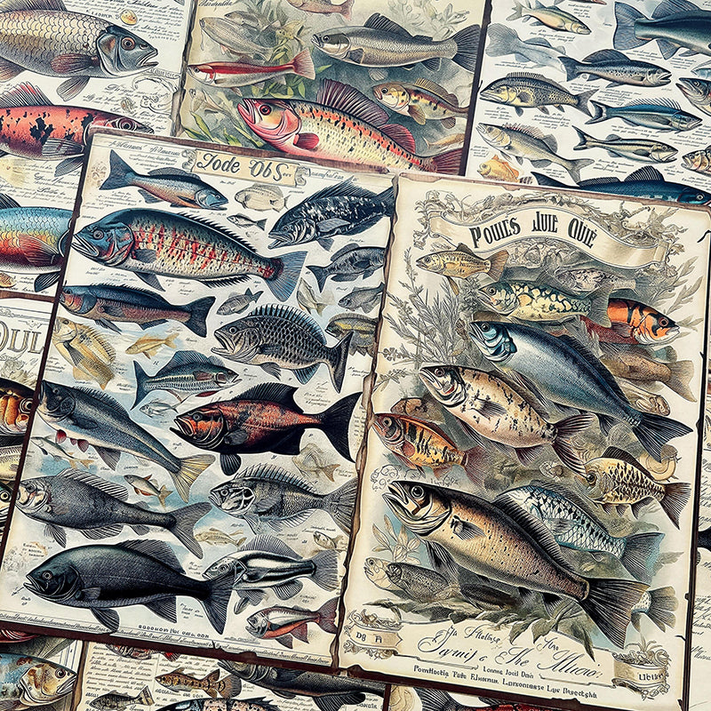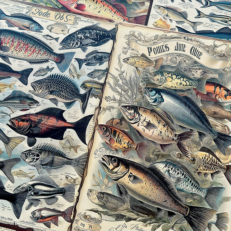 10 piezas de papel de fondo con forma de camarón y peces marinos
