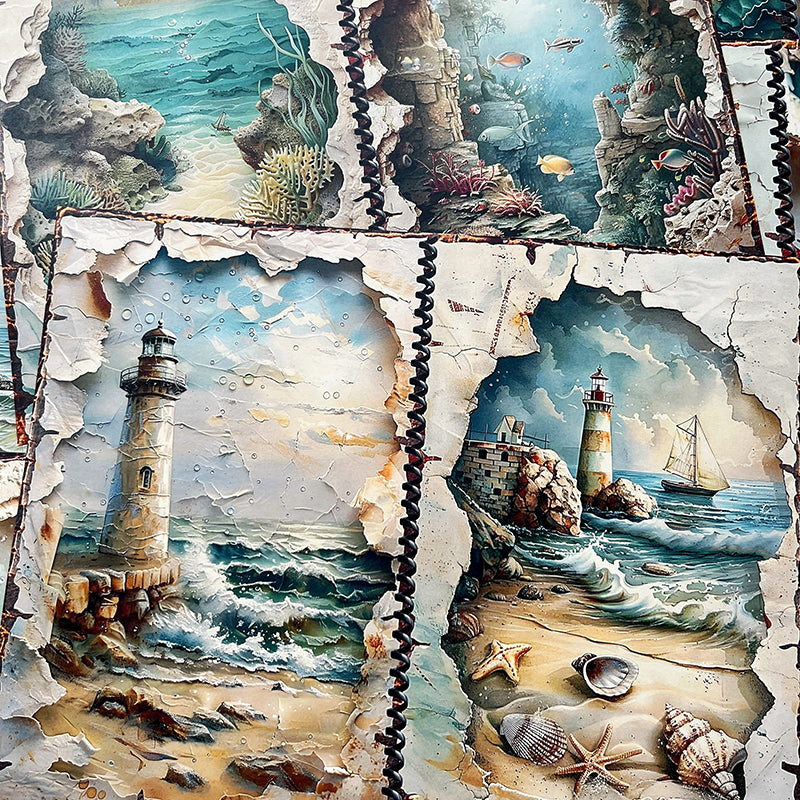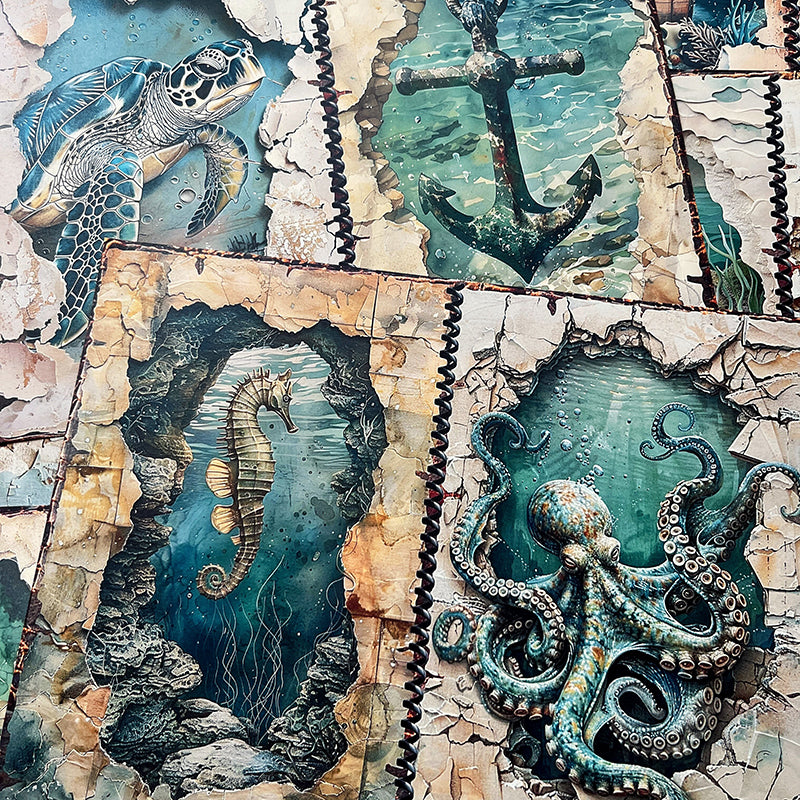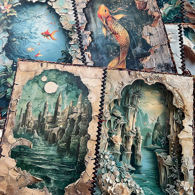 14 piezas de papel de fondo con diseño de castillo de sirena marina