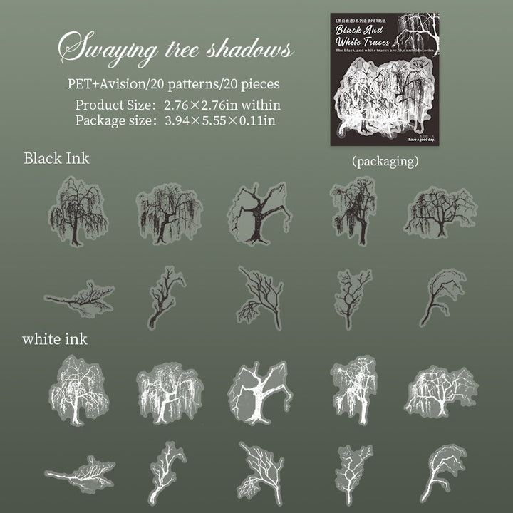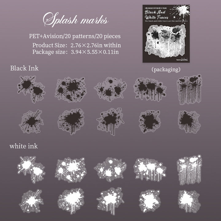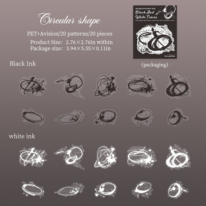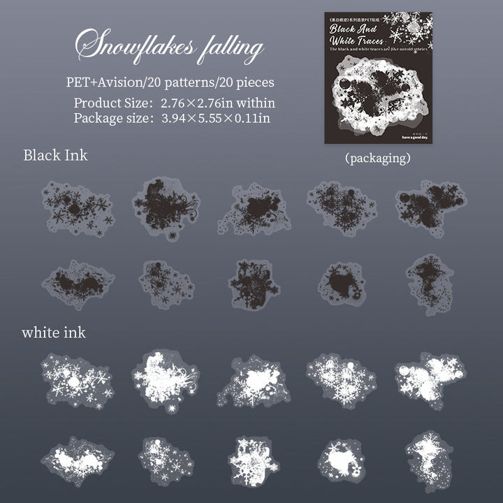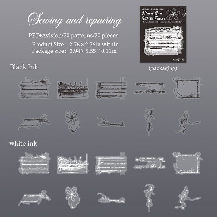 20PCS Black and White Traces Series sticker