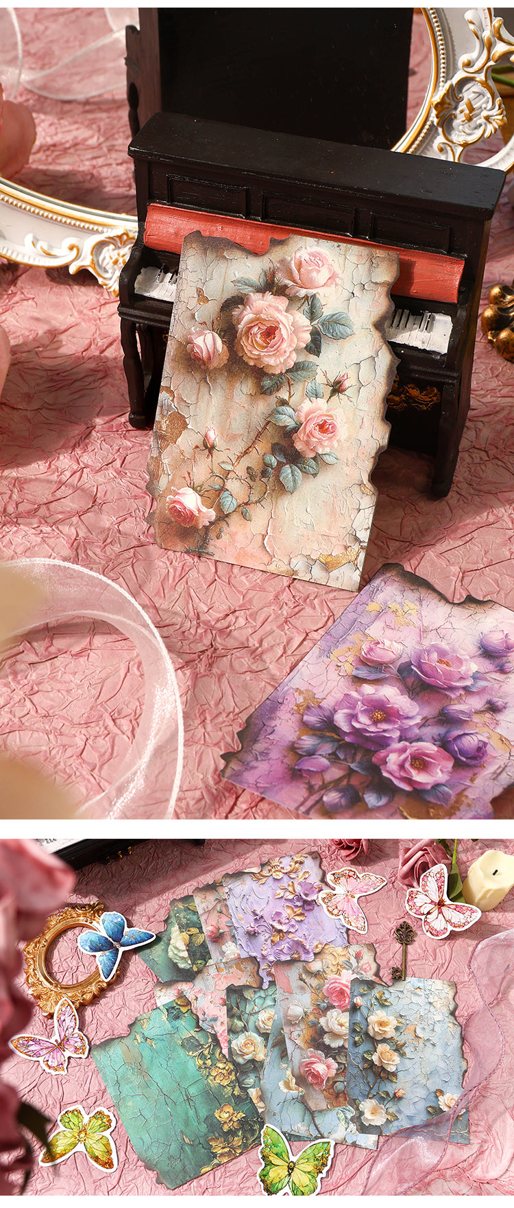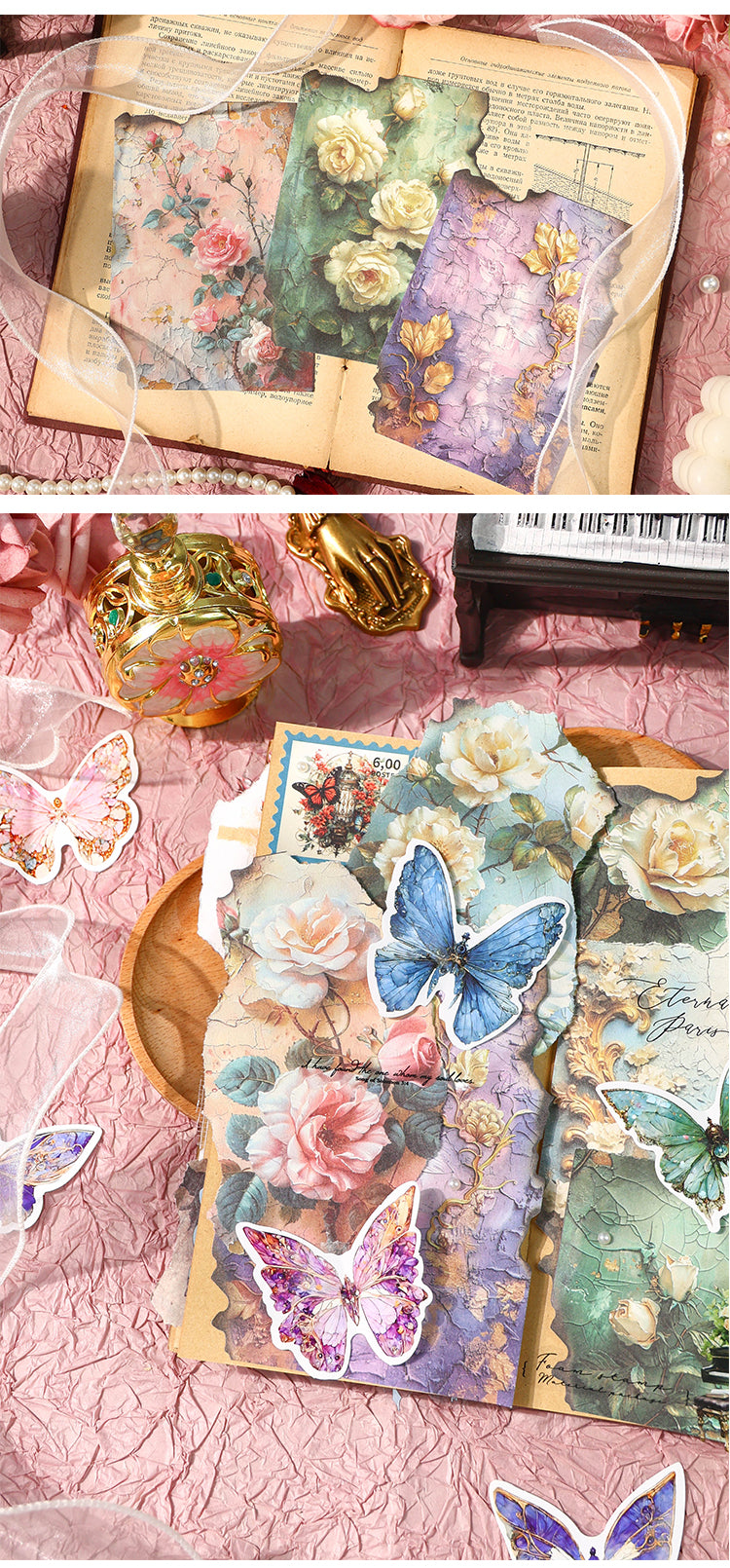 Juego de 30 piezas de papel con diseño de flores rococó