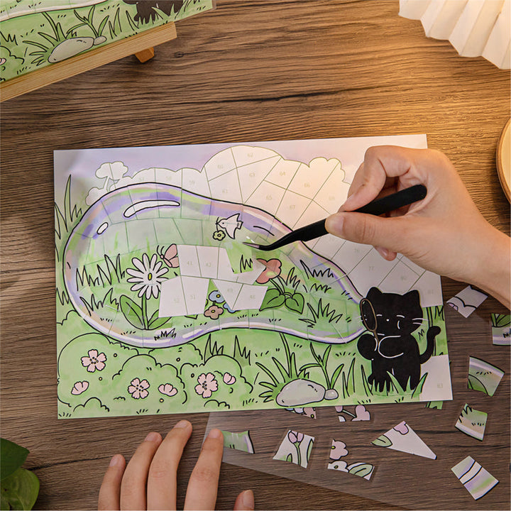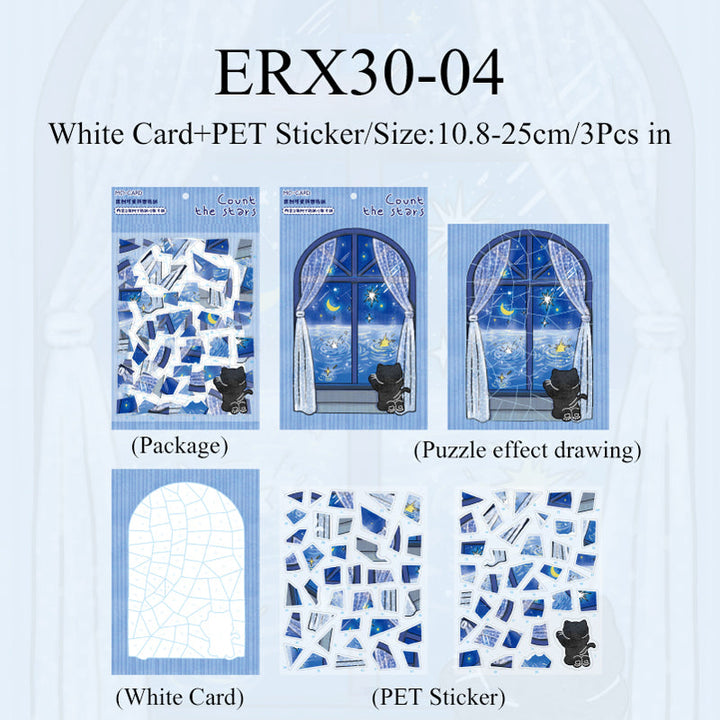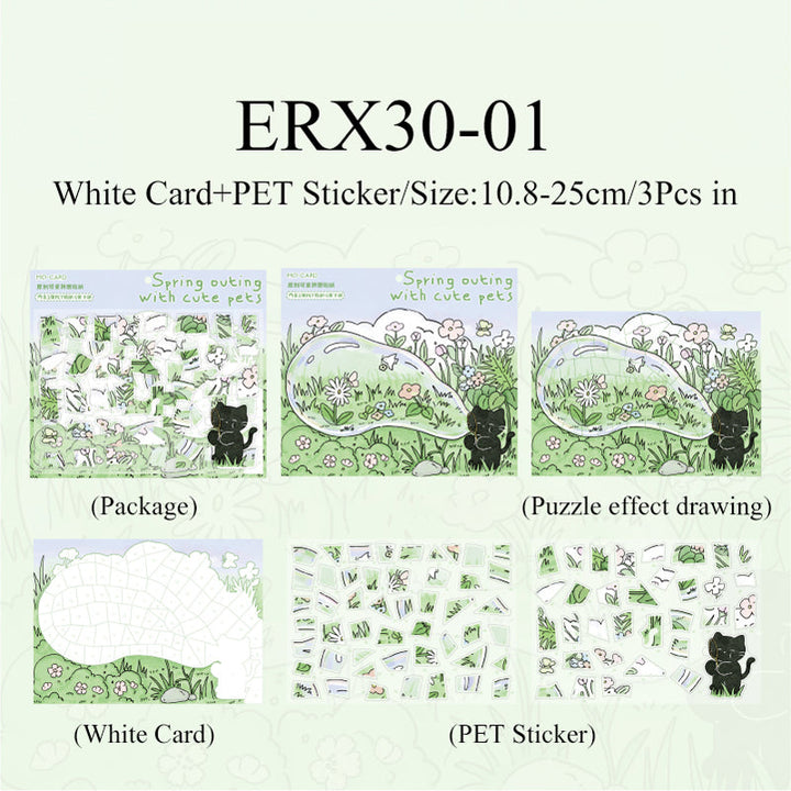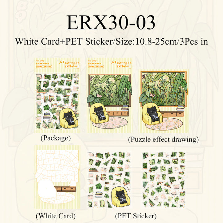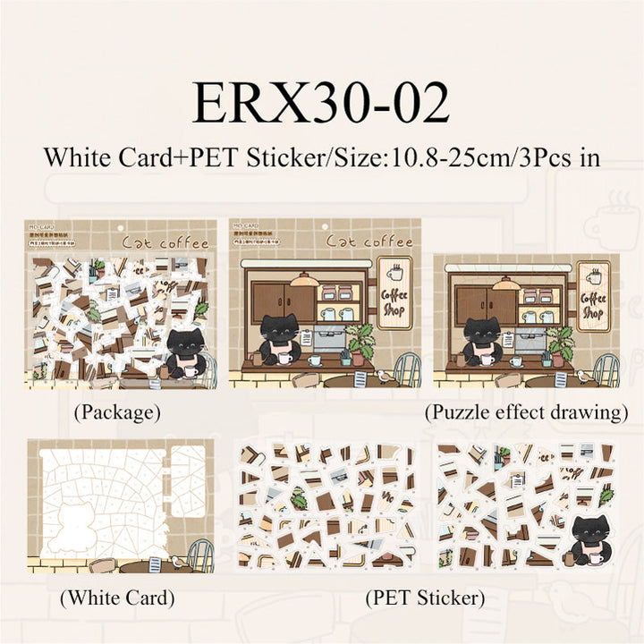 3PCS Little Black Cat series puzzle sticker