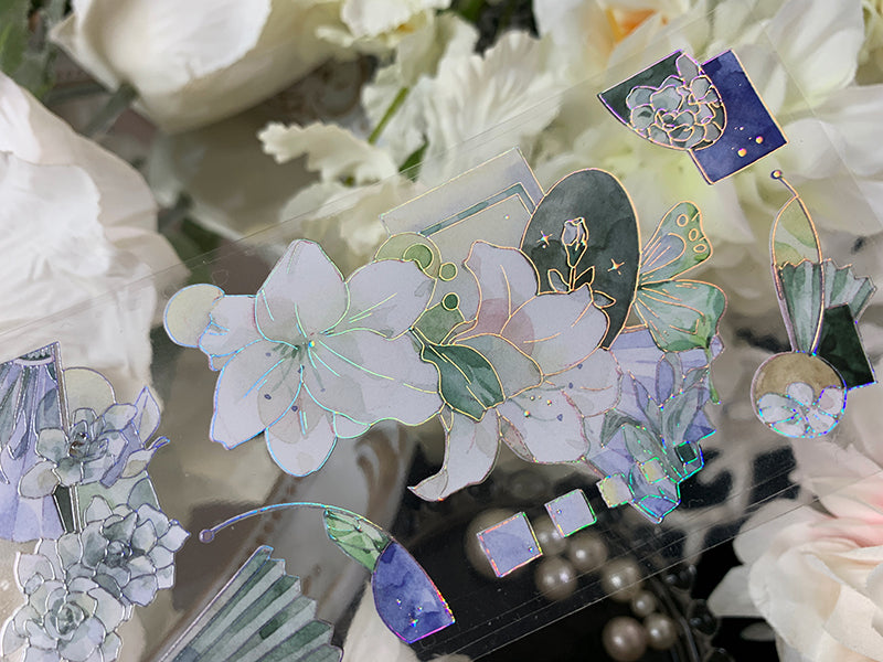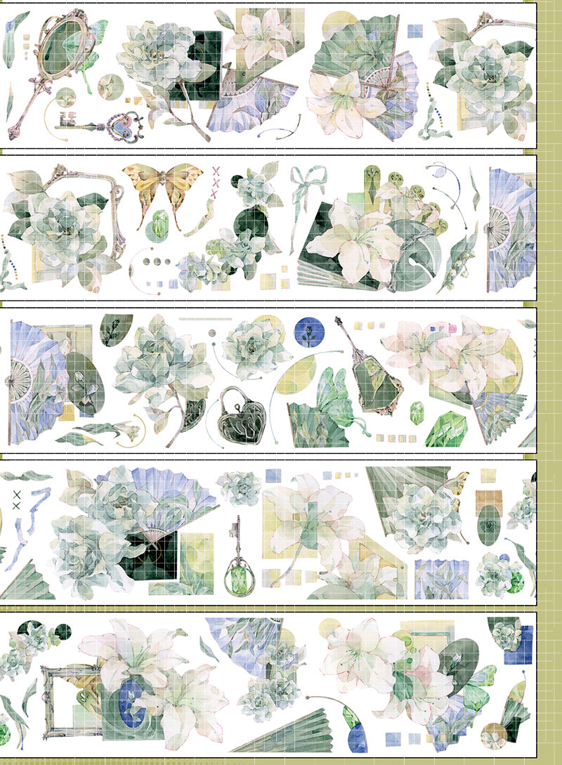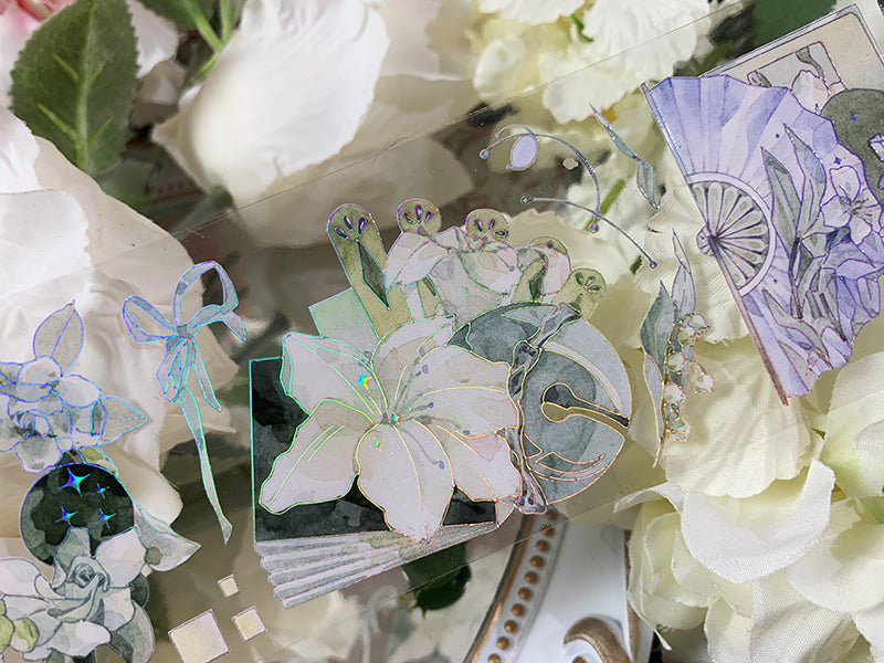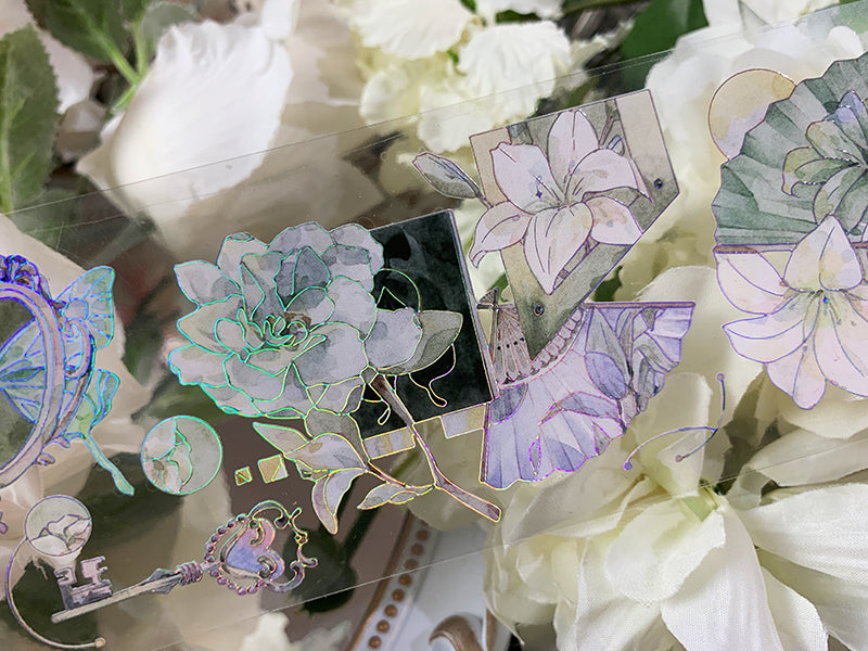 Cinta adhesiva plateada láser PET con diseño de lirio fresco de 6 cm x 100 cm
