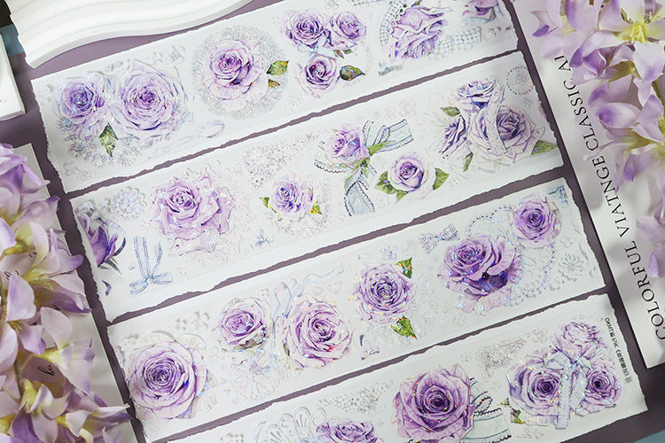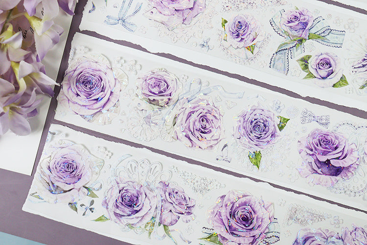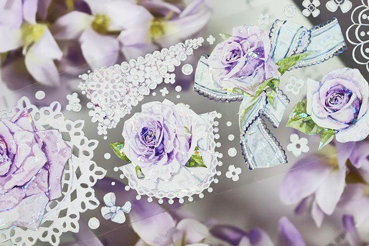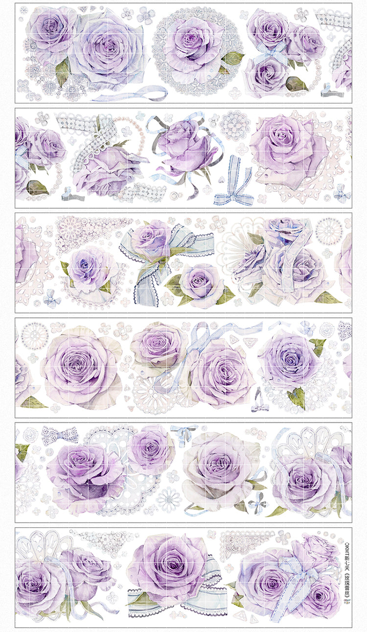 Cinta adhesiva PET ligera con encaje de rosas de 6 cm x 100 cm