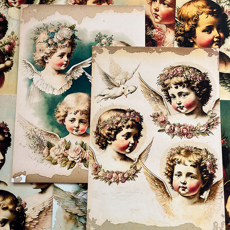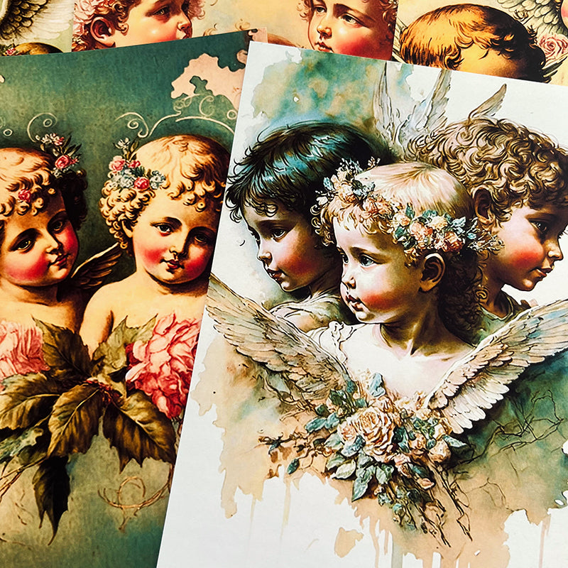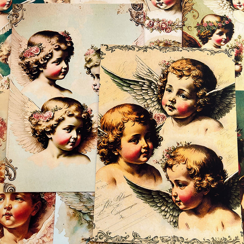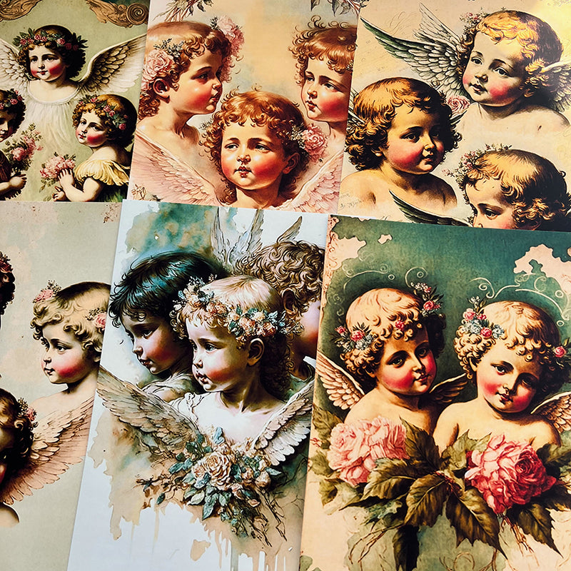 8 piezas de papel de fondo para niños con diseño de ángel retro