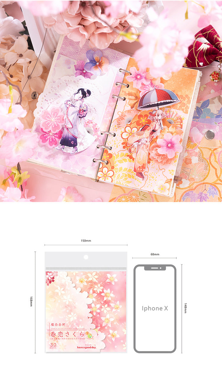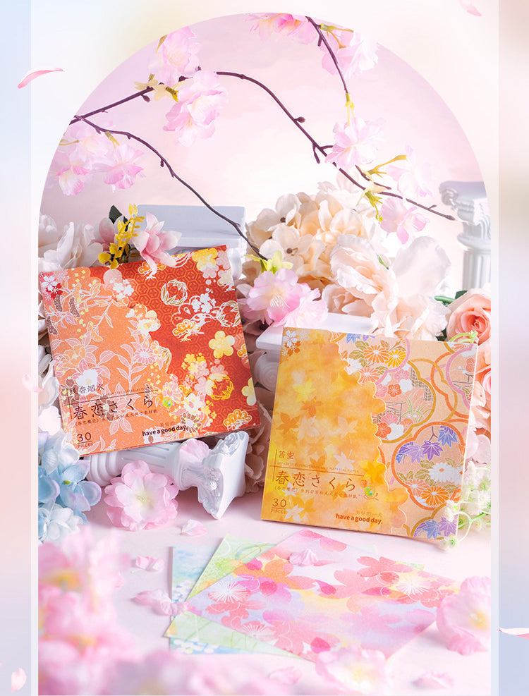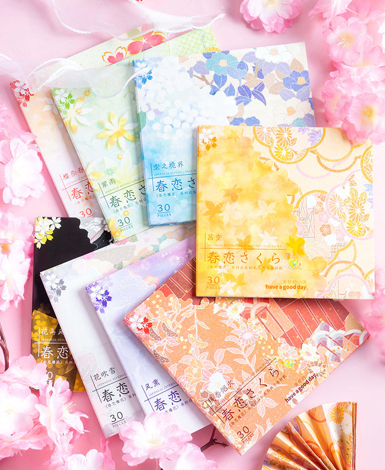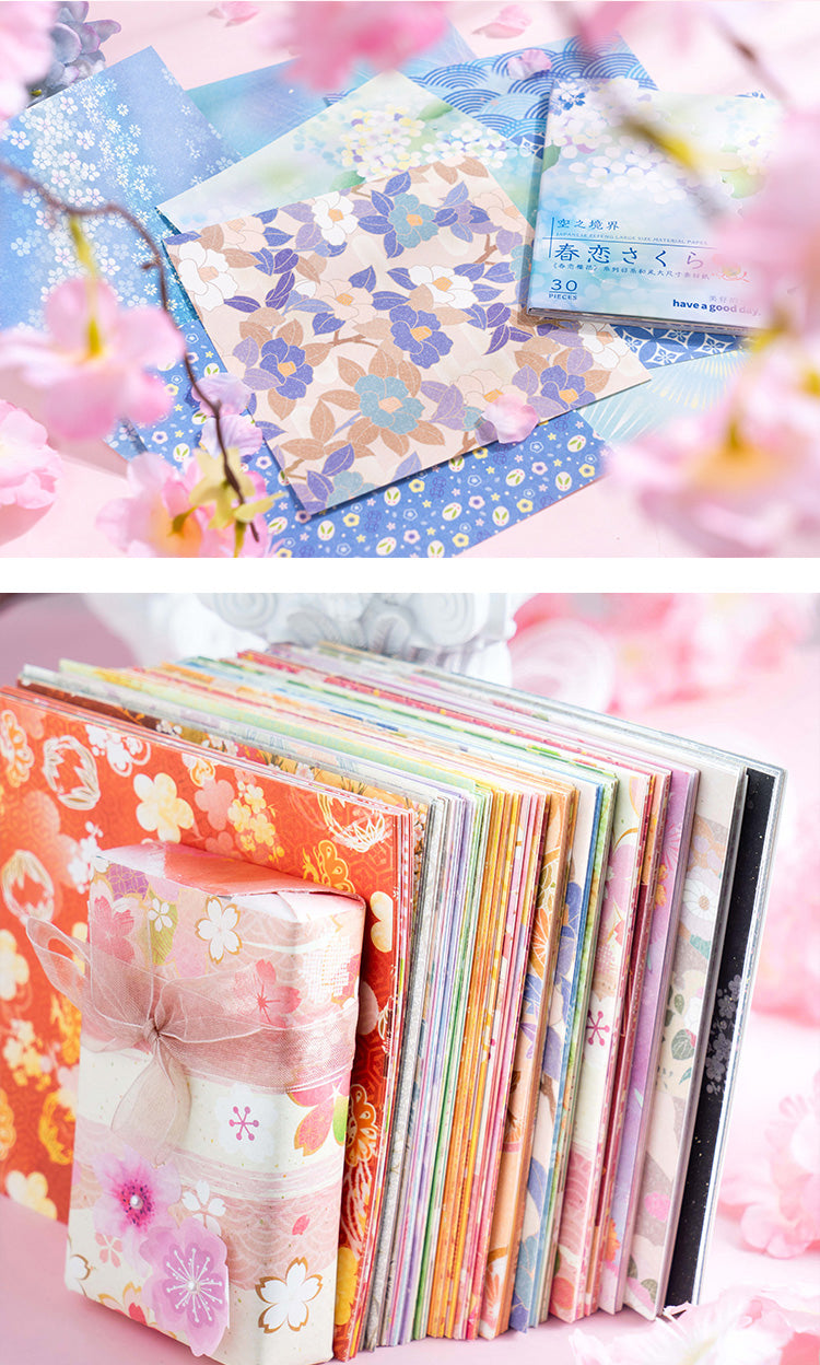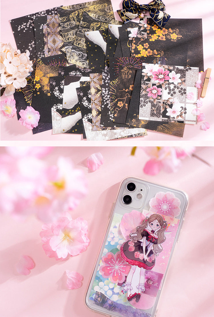 Serie de papel con flores de cerezo en primavera