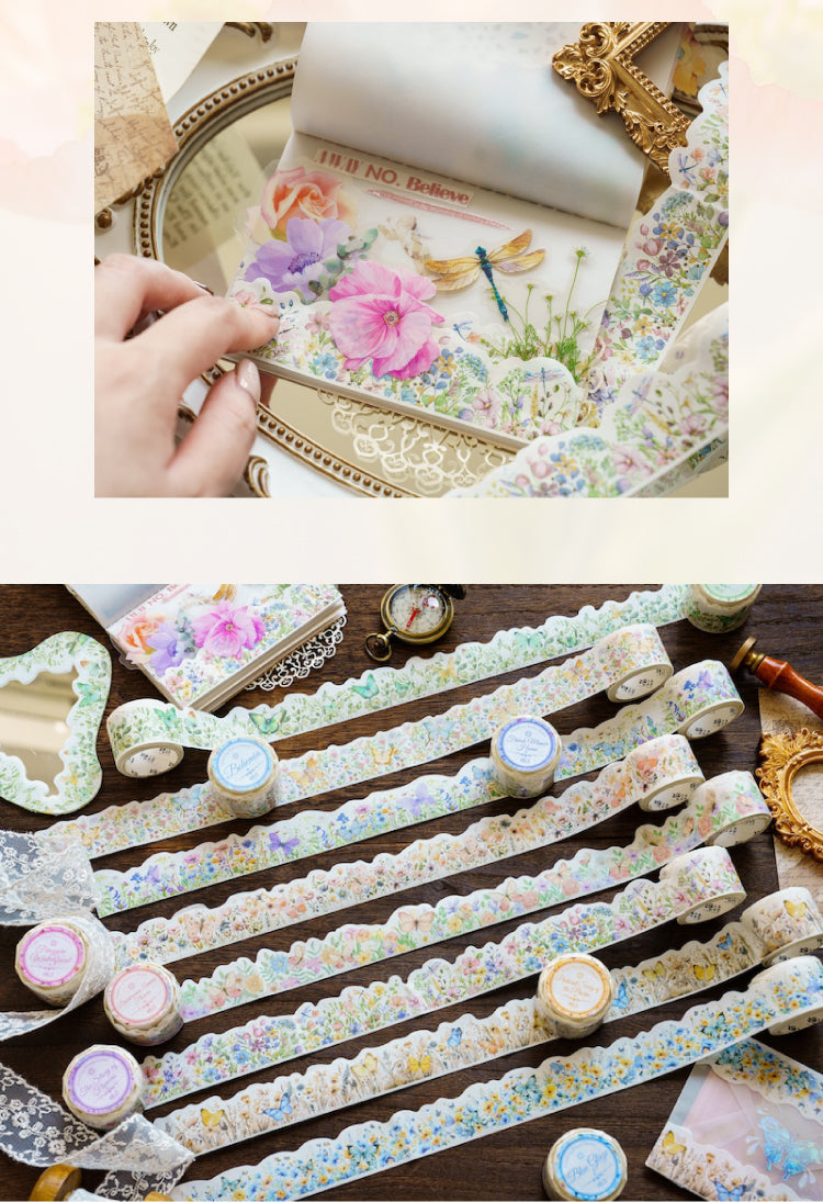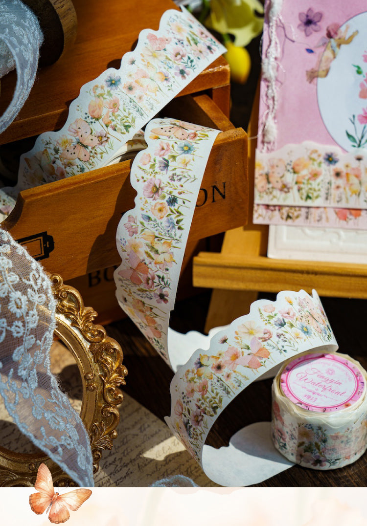 Cinta washi serie brisa ondulada con flores