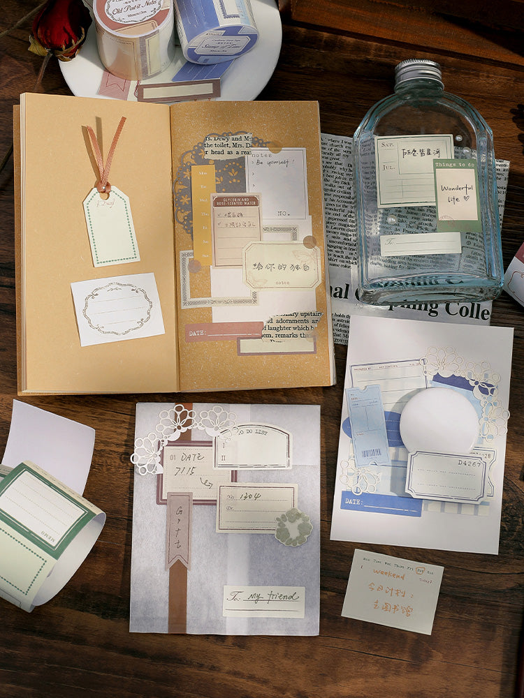 Colección de etiquetas de la serie de libros Troquelado de cinta de papel Kraft blanco