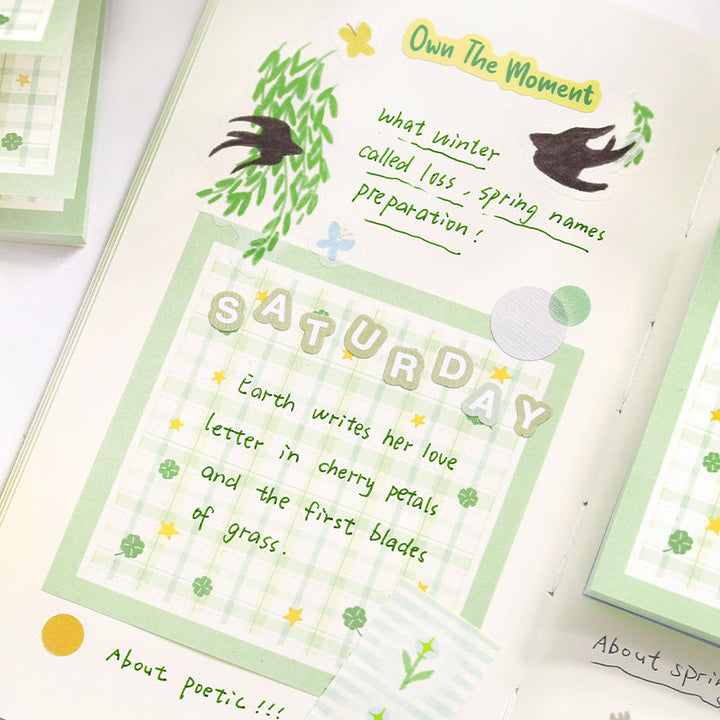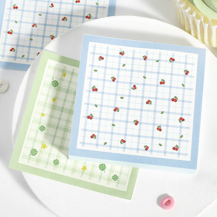 100PCS Flower leaf checkered fabric series note paper