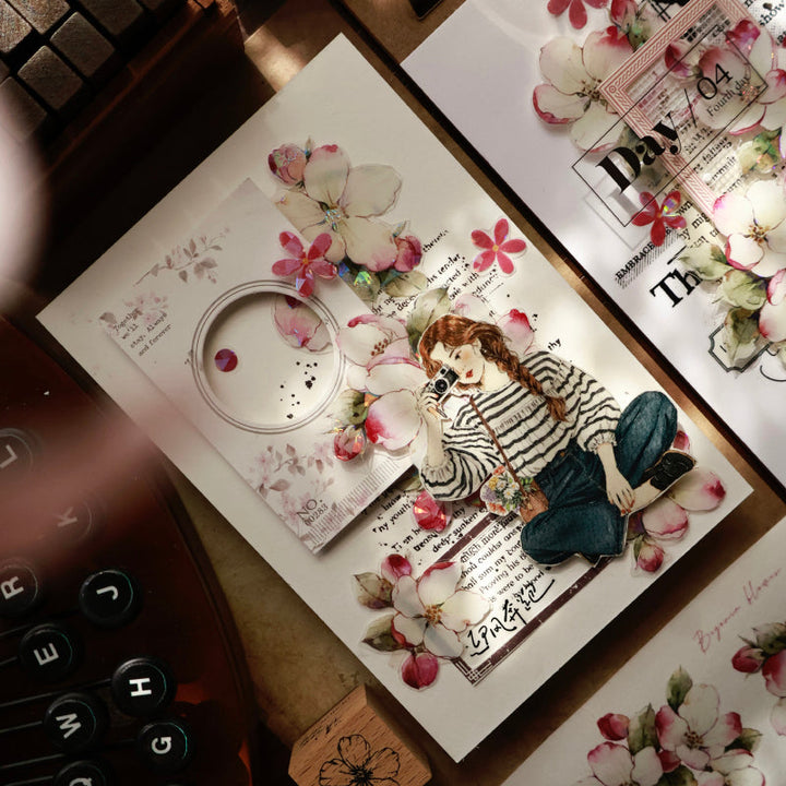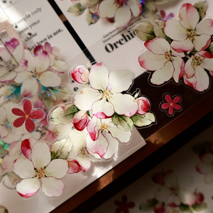 5.5cm*120cm Crabapple blossoms Die Cutting Washi/PET/Shell Light PET Tape