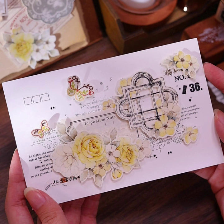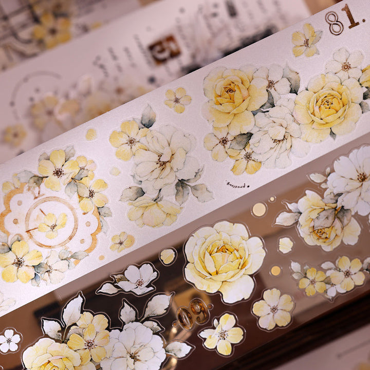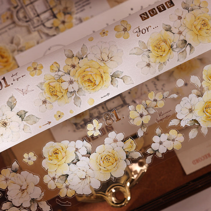 5.5cm*120cm Yellow rose Die Cutting Washi/PET/Shell Light PET Tape