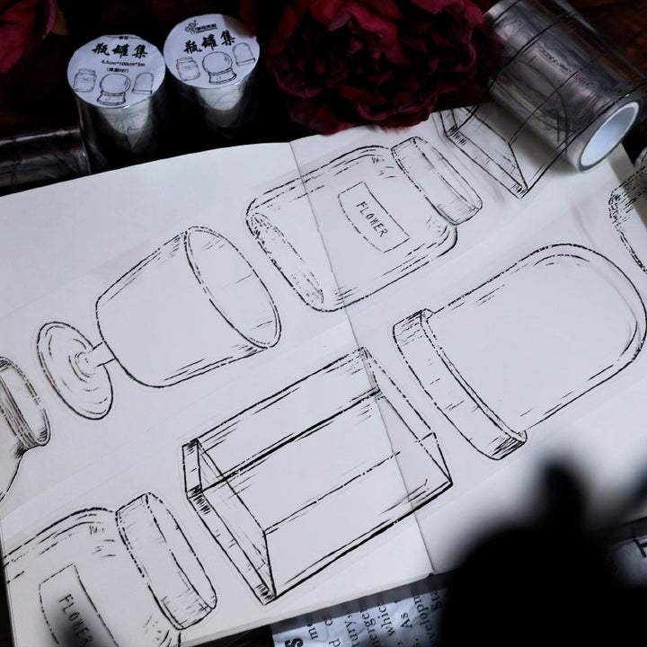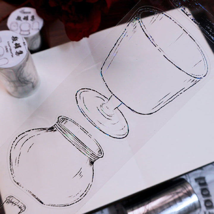 6.5cm*100cm Bottle jar collection Die Cutting PET/Shell Light PET Tape